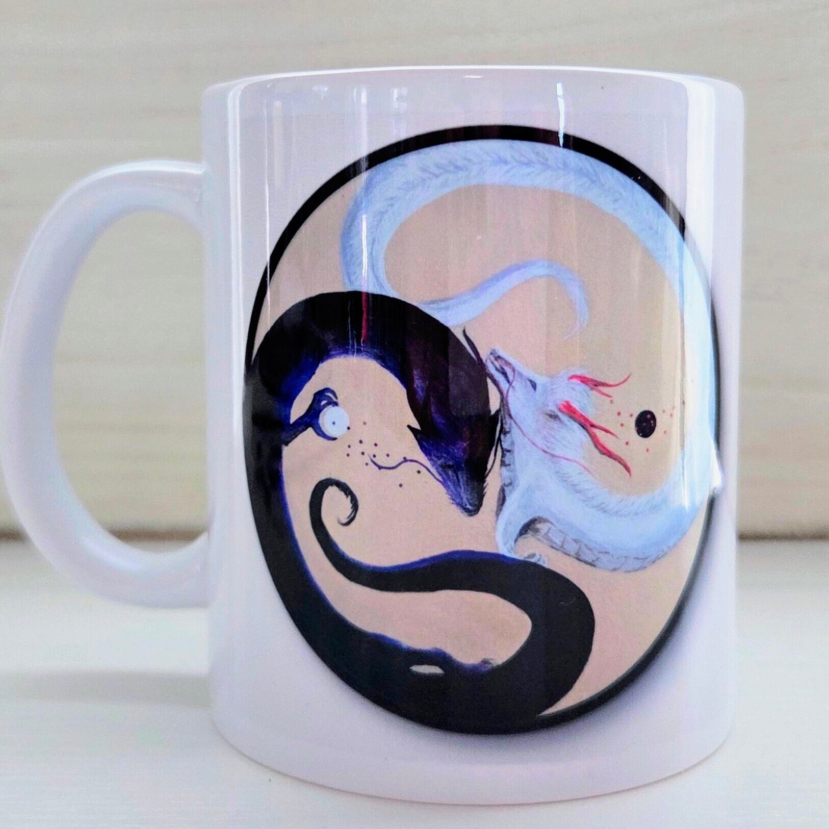 このマグカップは、毎日の飲み物を特別な体験に変える魅力的なアイテムです。デザインには、アカシックレコードからインスパイアを受けた龍のモチーフが描かれ、見るたびにエネルギーを感じ取ることができるでしょう。毎日のコーヒーやお茶が、あなたの内なる力を引き出すサポートとなります。