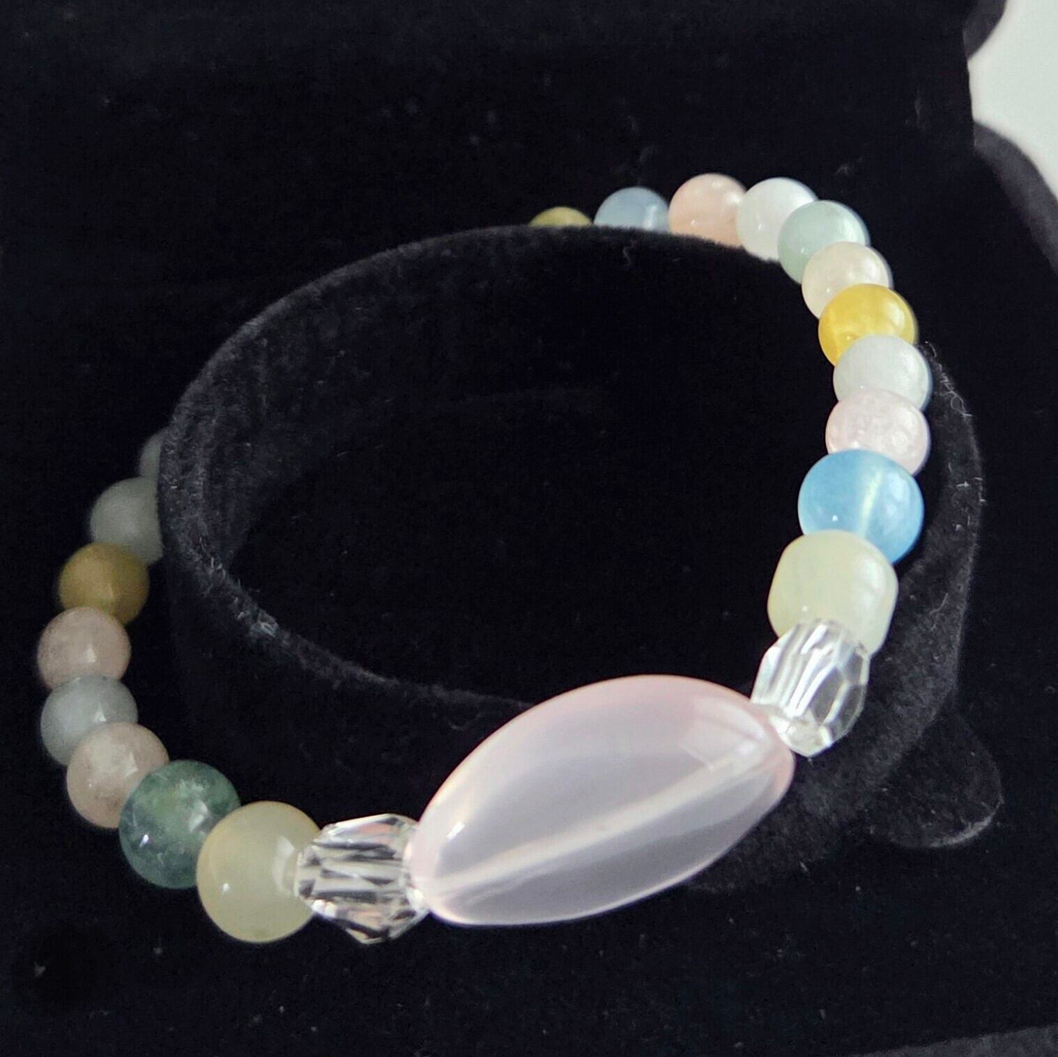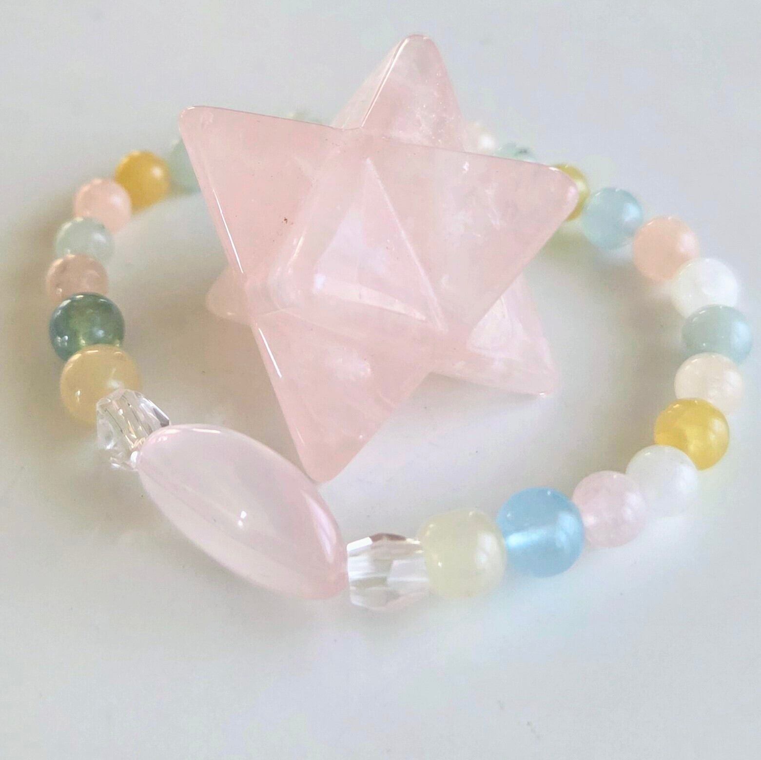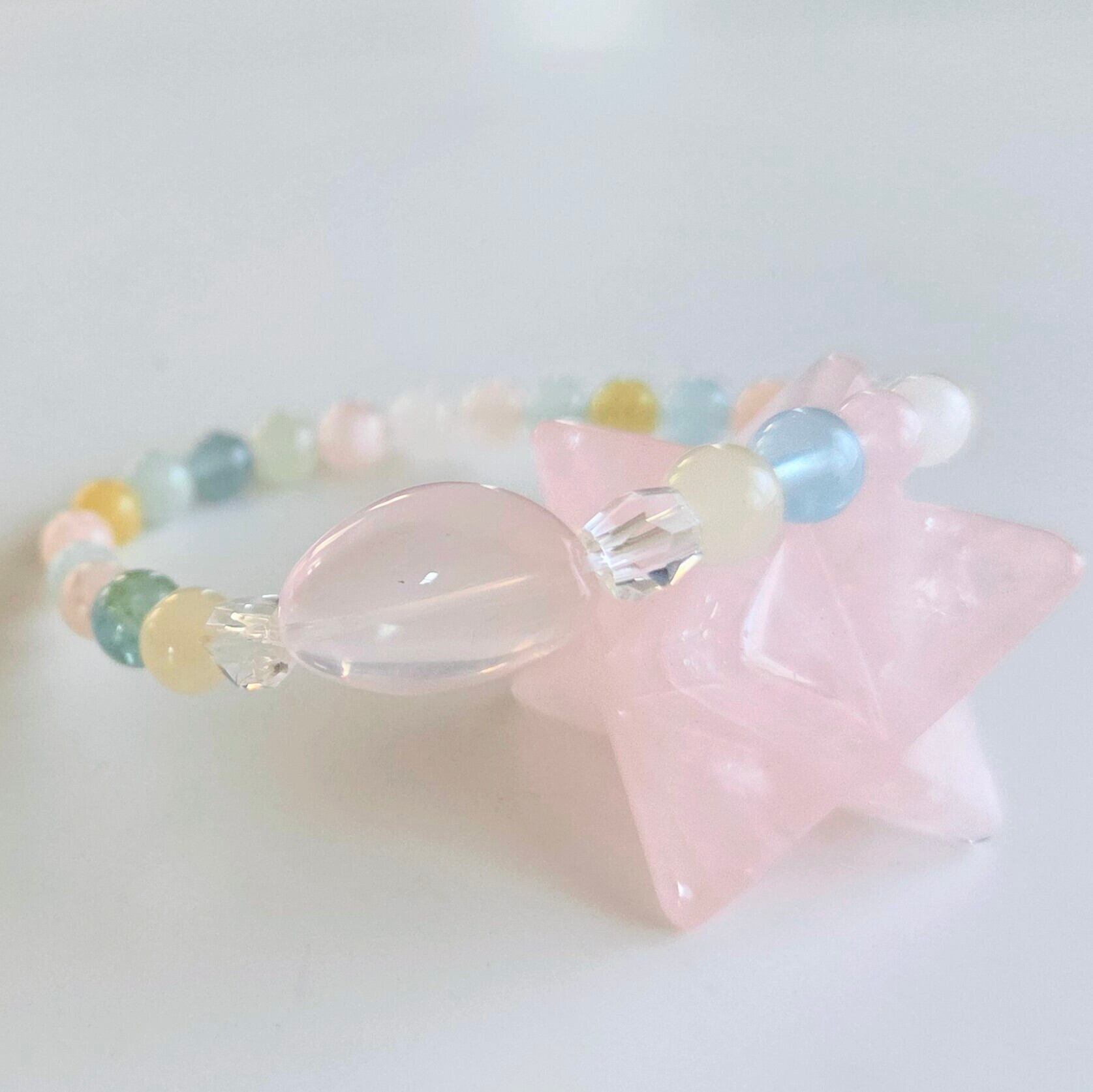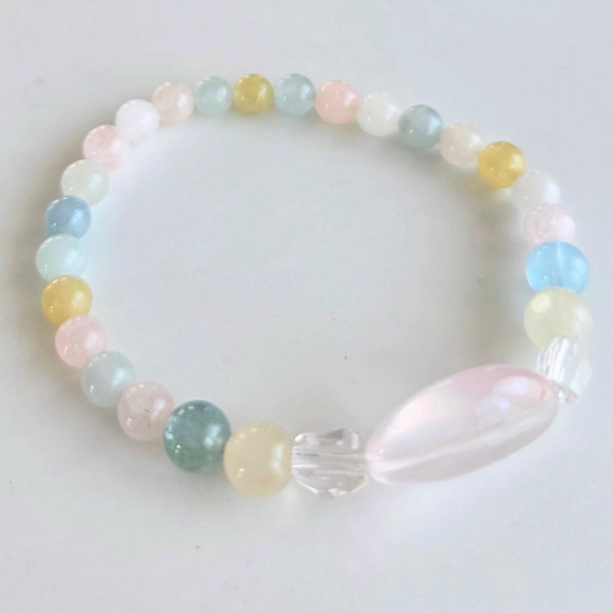 このパワーブレスは、あなたの日常に特別なエネルギーをプラスする魅力的なアイテムです。ベルミックスの虹の色合いが創造的な感性や直感を呼び覚ましまし水晶がパワーアップさせます。