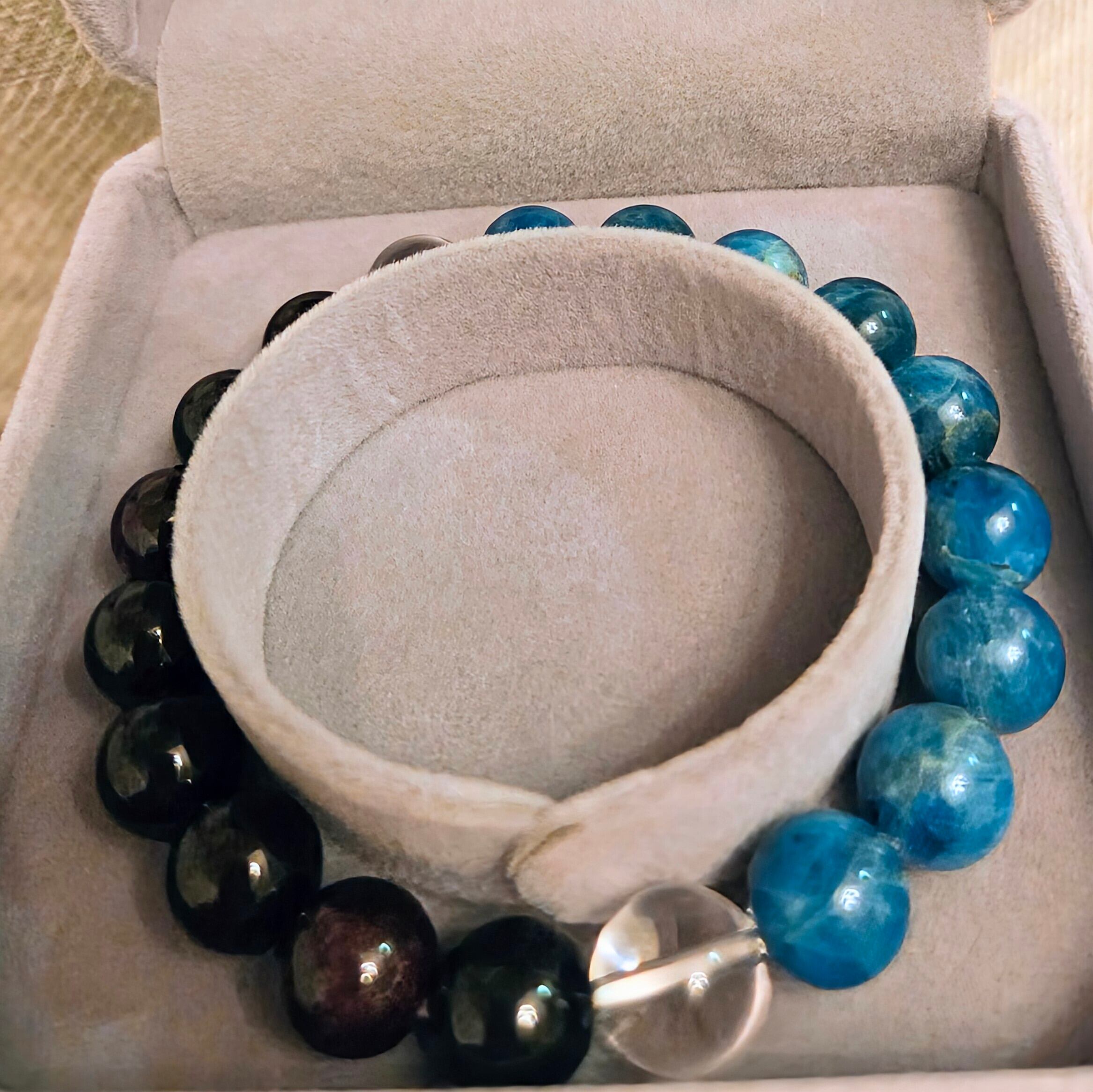 地球色ブルーアバタイトそして土と血の色ガーネットがあなたの力強く現実化を後押しします。