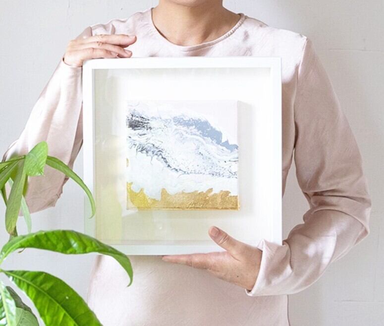 アートに集中するために額、マットは白で設定いたしました。額装してお届けいたします。