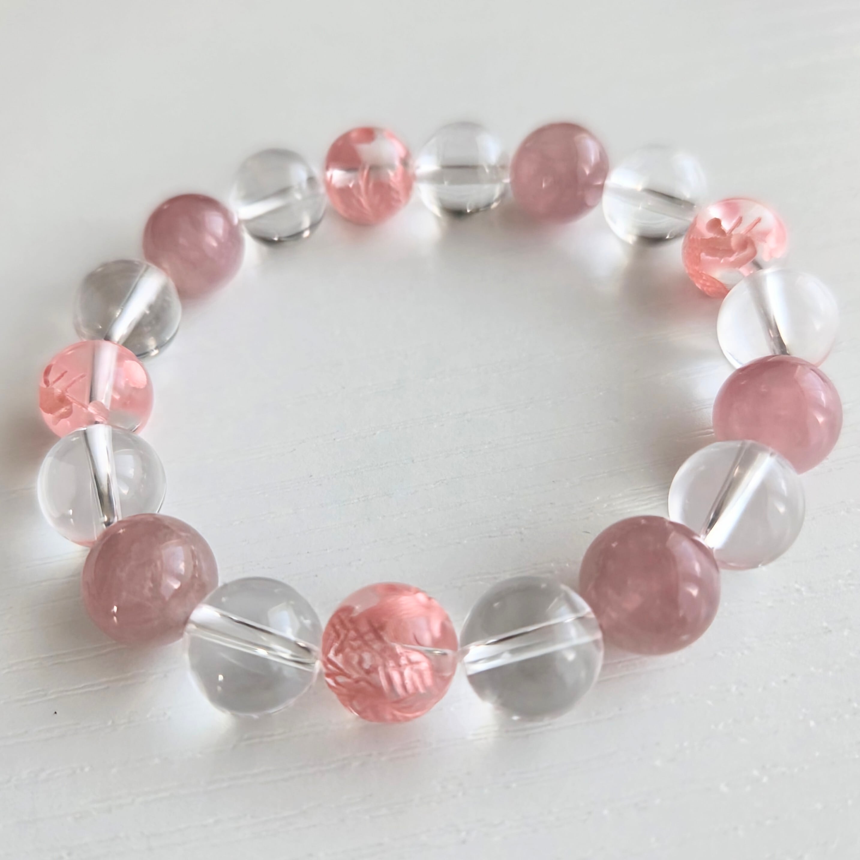 トップ ピンク彫刻鳳凰水晶AAA 10mm